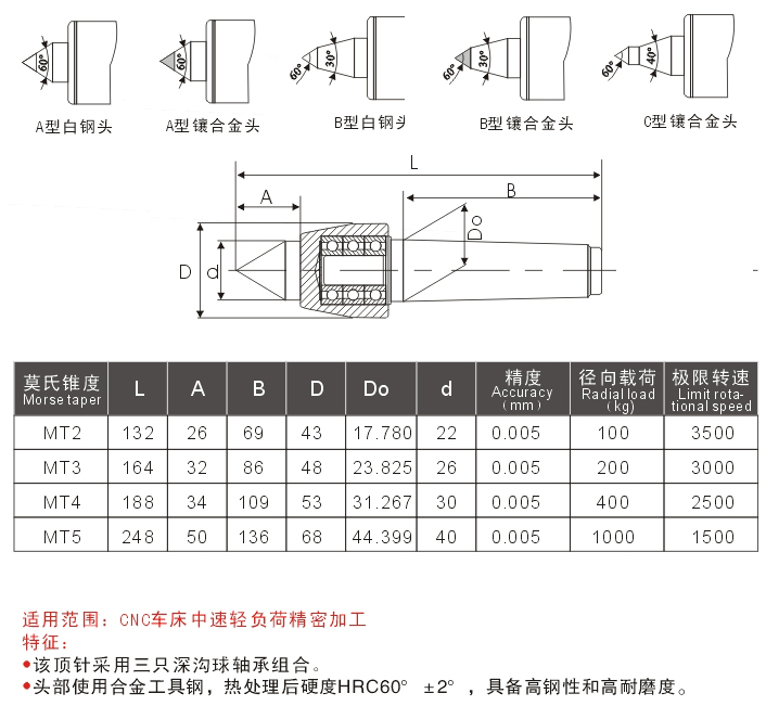 精密插入式回转顶尖系列